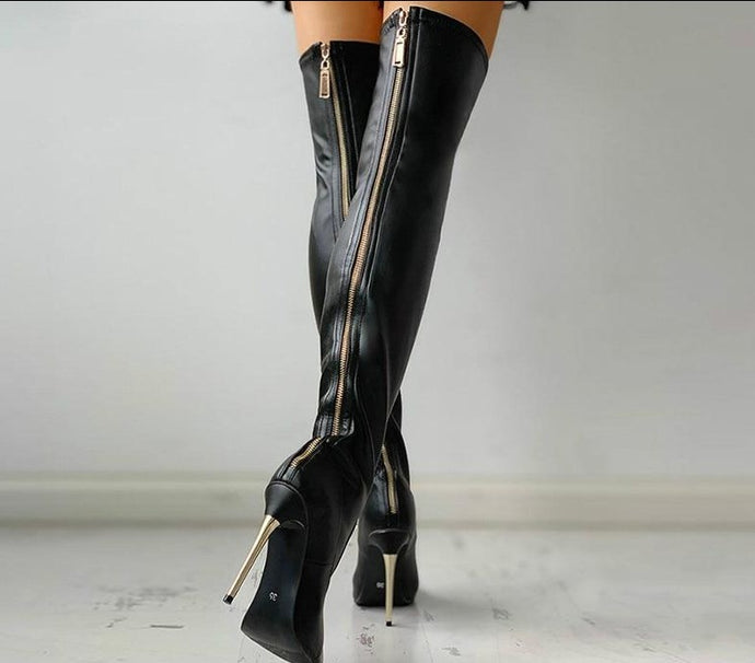"Cat Walk" Black High Heel Boots For Ladies (4-10.5 US)