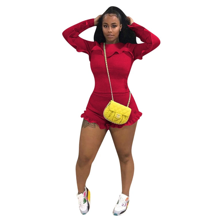 | Product type: | Ruffle top And Shorts Casual Ruched Solid Two Piece Short Set |